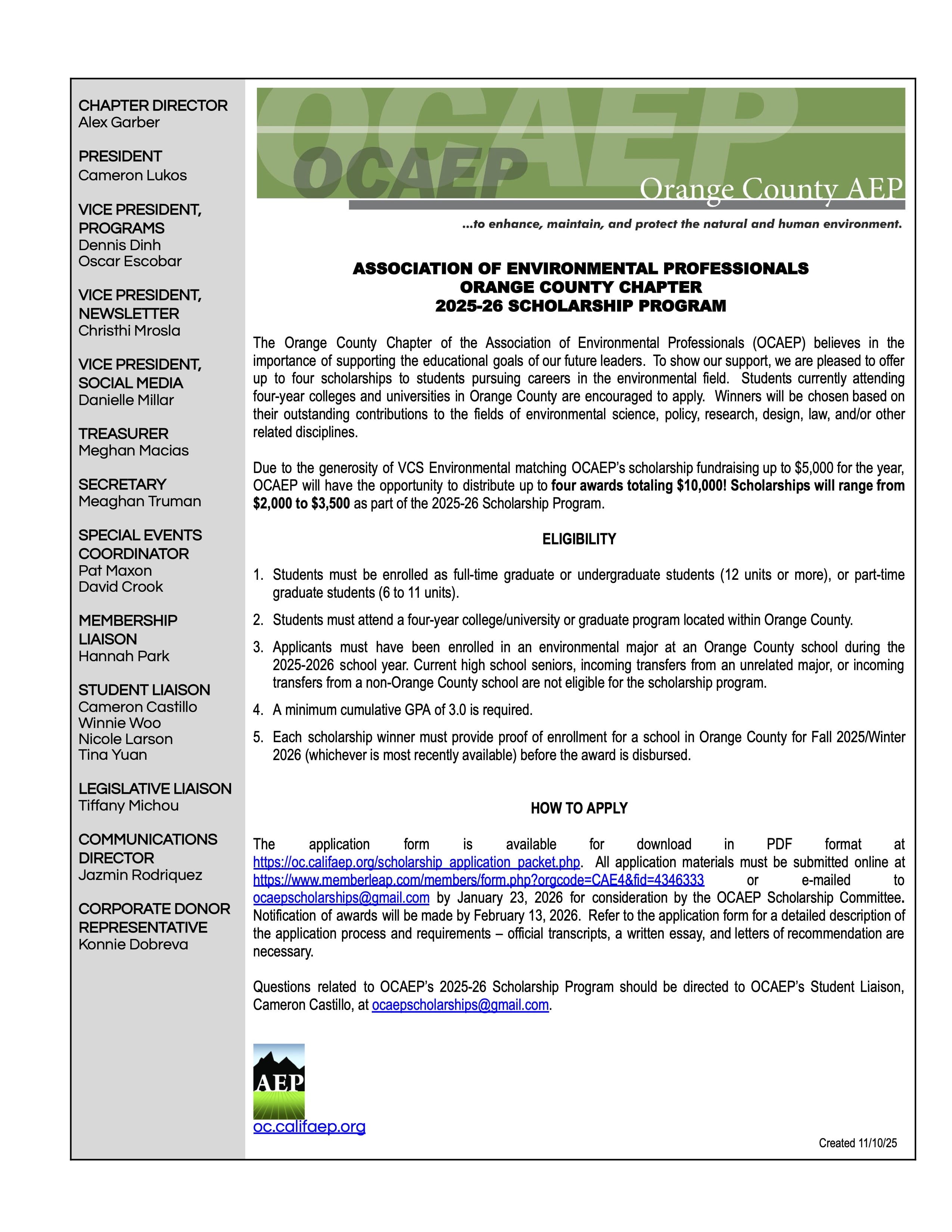 2025/2026 Student Scholarship Deadline is January 23, 2026.